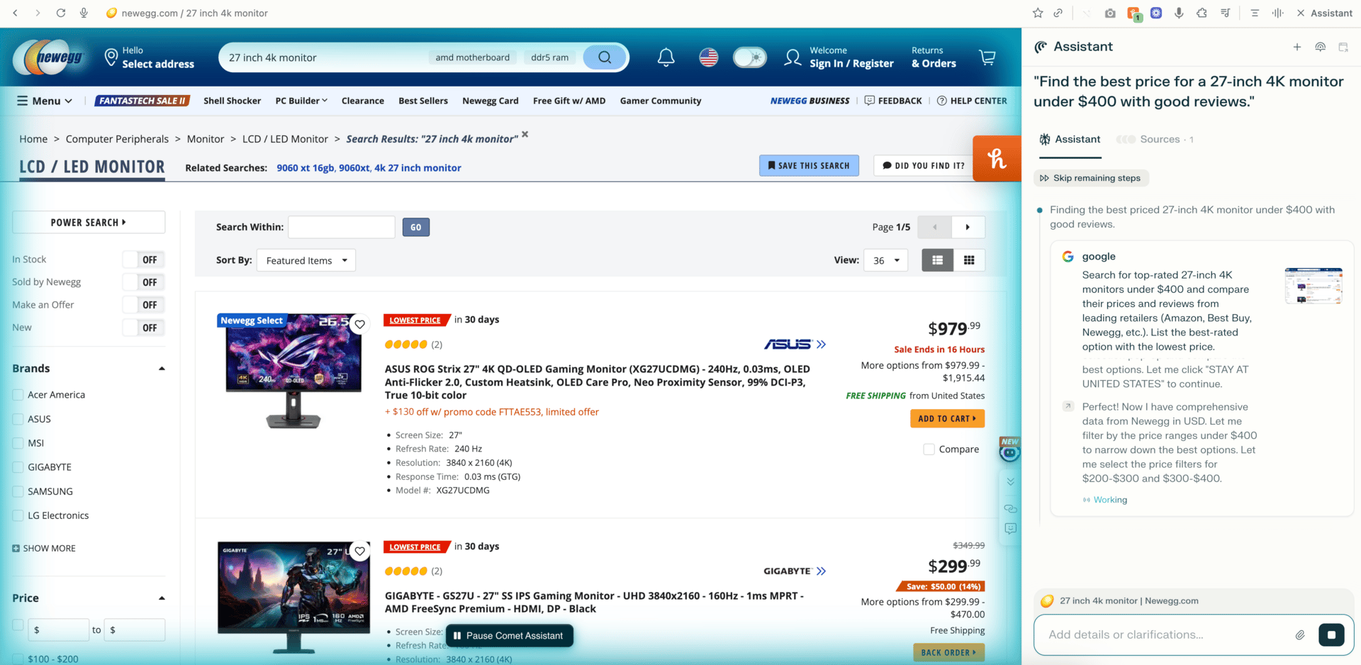 When it comes to online shopping, instead of searching for deals across Amazon, eBay, and a bunch of other sites, you can ask Comet to help find the best deal on whatever you’re looking for: