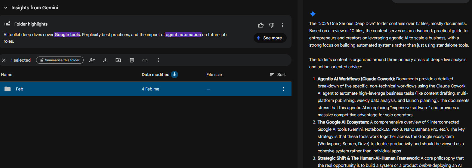 Google's betting on the fact that you will need more than just one AI tool (ChatGPT/Claude/Gemini) especially those creating content or building an online business. Their toolkit has strength in numbers and covers all the major creative spaces and most importantly the baked in continuity, as they all share the same brain. Your Gemini conversation feeds into your Workspace. Your NotebookLM research connects to your Drive. Your AI-generated images land in your Google Docs.