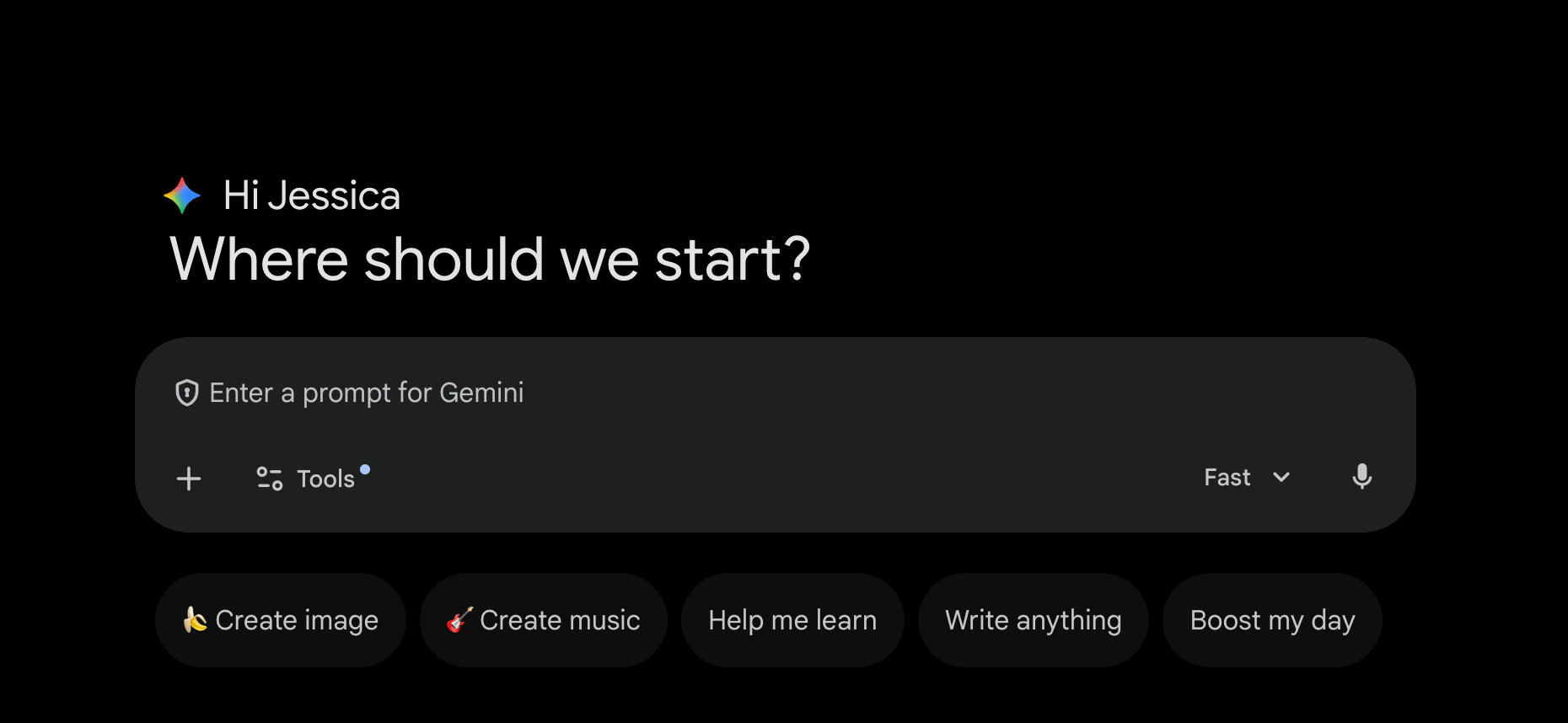 Search, video, images, productivity, learning, research, code - all powered by the same Gemini engine, connected to your Google account and designed to work together.